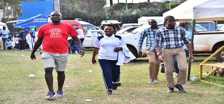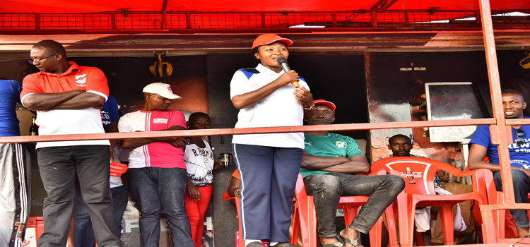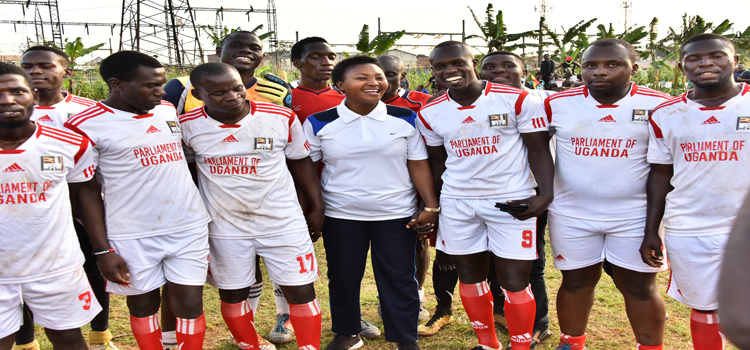 Hon Winfred Kiiza participates in the Corporate League at Kyadondo Rugby Grounds June 2018