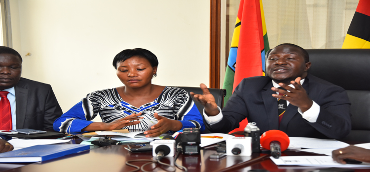 Hon Winfred Kiiza and opposition MPs at a press briefing