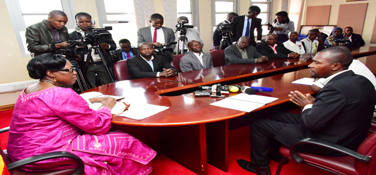 Speaker, Rebecca Kadaga receives a petition from Kampala City Vendors and Hawkers over KCCA